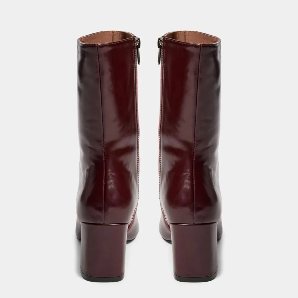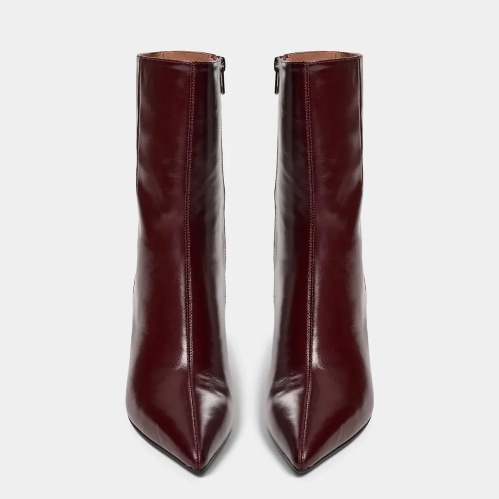 Glansfulde støvler, der kombinerer klassisk elegance med moderne kant – et statement-piece til skosamlingen. Den spidse snude og den markante syning i midten giver støvlen et raffineret udtryk, mens den høje hæl tilføjer både højde og attitude. Med lynlås i siden er støvlen let at tage af og på, og det gennemførte design gør den ideel både til hverdagsbrug og særlige anledninger. Et par støvler, der løfter ethvert outfit og tilfører garderoben både eksklusivitet og stil.