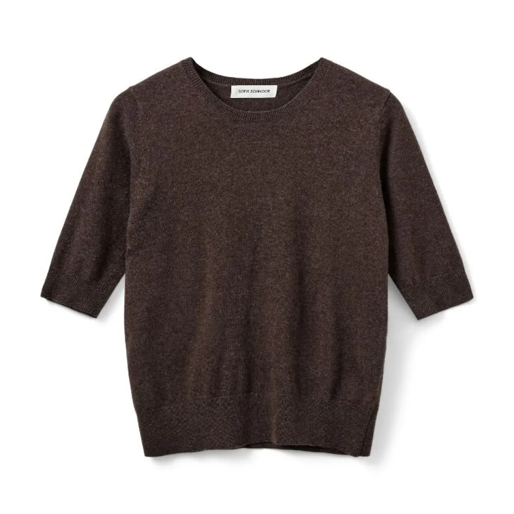 VianaSW striktrøjen fra Sofie Schnoor er en stilren og tidløs klassiker til garderoben. Den er designet i en smuk brun nuance kaldet Brown Fudge, som passer perfekt til både efterår og vinter, men også som en elegant overgangsstrik på kølige sommeraftener. Trøjen har korte ærmer og en regular fit-pasform, som gør den både behagelig og alsidig at style.