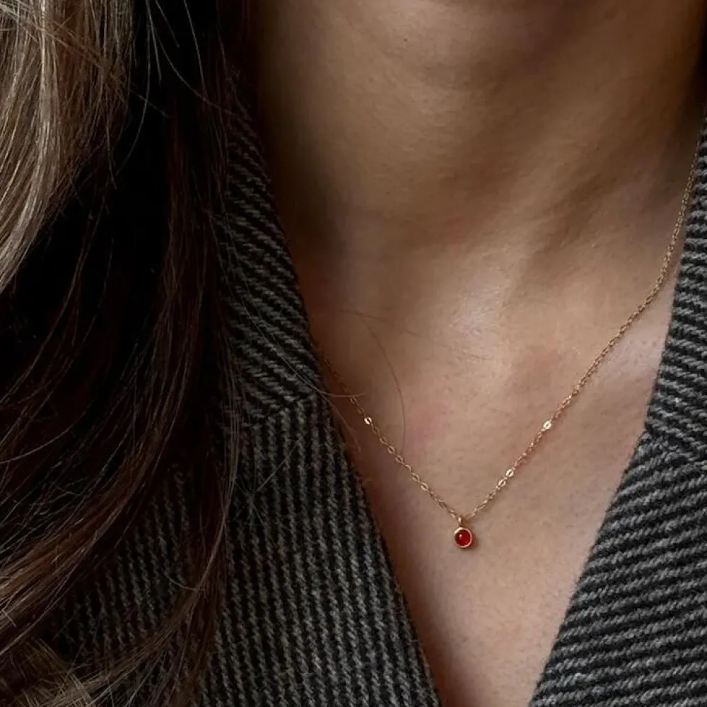 Fin, enkel og symbolsk halskæde, der emmer af elegance. Halskæden er skabt med formålet om at styke passion, mod og energi. Den dybe, røde agate symboliserer jordforbindelse, stabilitet og styrke. Håndlavet med omhu og præcision er halskæden mere end blot et smykke – dén er en kilde til indre ro og spirituel balance, der hjælper med at finde vej – med styrke og selvtillid. Halskæden er unika, idet krystaller aldrig er ens.