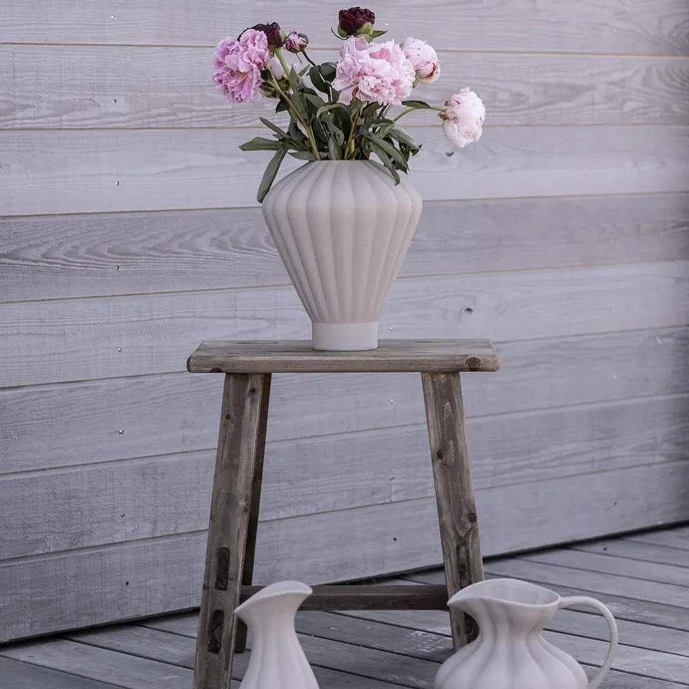 Moderne og stilfuld vase, der med sit karakteristika er en yndig tilføjelse til boligindretningen. Vasen er designet til at være et centralt designobjekt – uanset blomstertrend og sæson. Vasen er håndlavet og materialevalget er naturligt, hvorfor der kan forekomme variationer, mærker samt andre ‘ufuldkommenheder’.