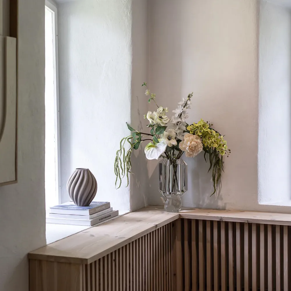 Qua den rå og strukturelle overflade er vasen mere modtagelig. Desforuden medfølger der i kassen beskyttelsesfilt til vasens bund.