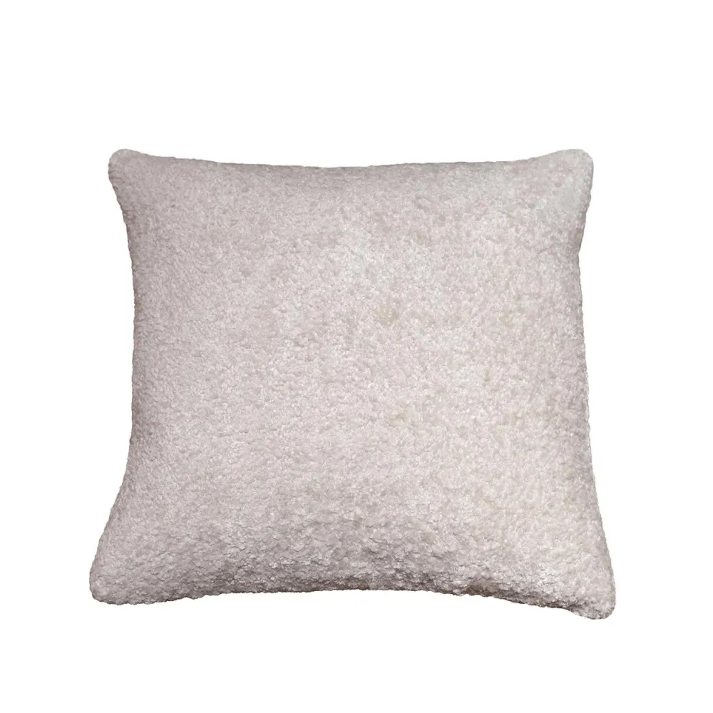 Blød og stilfuld pude, der på fineste vis balancerer komfort og æstetik. Puden er udført i den fineste elfenbensfarvet nuance og i tekstureret materiale, der skaber et raffineret og indbydende udtryk. Puden emmer af diskret luksus , og dens bløde kvalitet gør den ideel til både sofaen, sengen eller yndlingslænestolen. Skab en atmosfære af ro og sofistikering med puden, der skiller sig ud med sin unikke tekstur og klassiske farvetone.