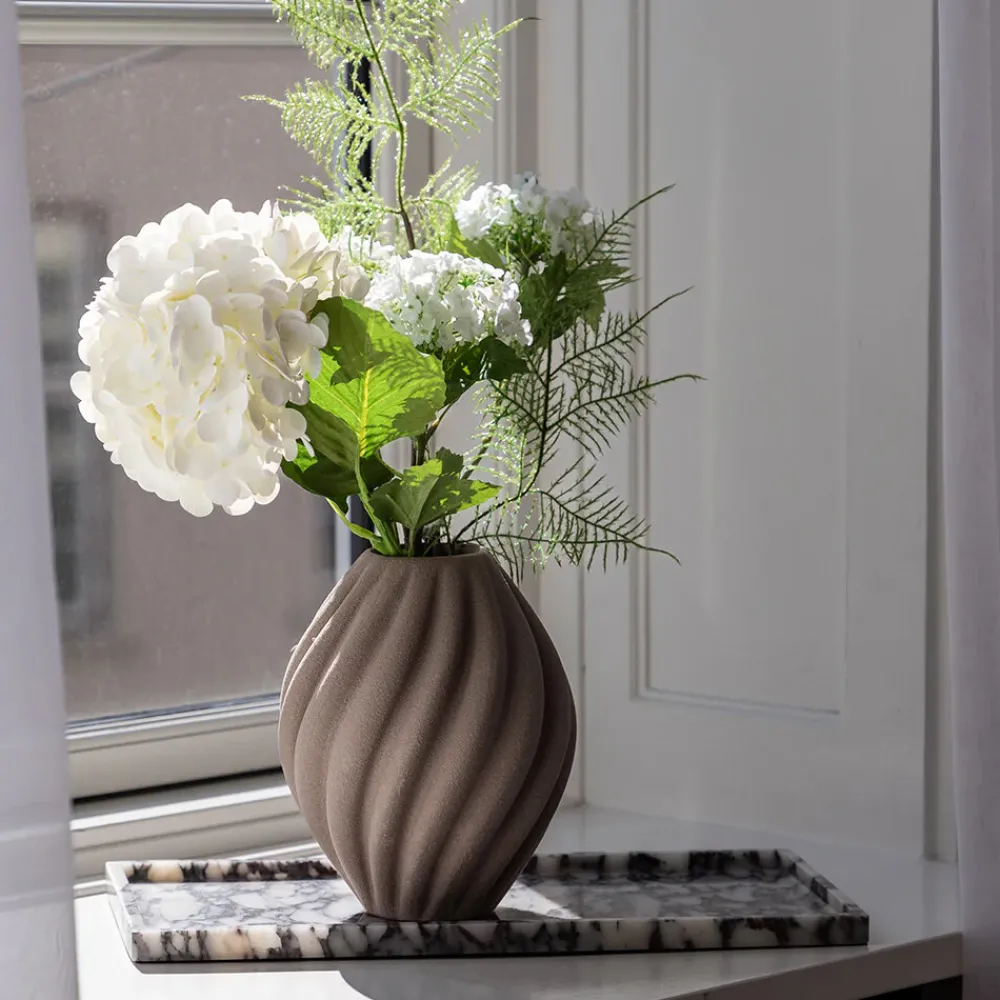 Bakken er fremstillet i marmor – en natursten, hvorfor hvert enkelt design er unik i både farve og mønster. Qua materialevalget og strukturen heri emmer bakken af moderne eksklusivitet og tidløs luksus. Bakken er således ideel til skabelsen af fine og inspirerende stilleben i hjemmet.