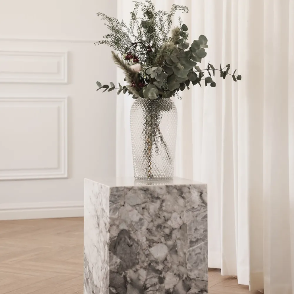 Perfekt kombination af moderne og tidsløst. Phantom er et eksklusivt sidebord, hvor hvert bord er helt unikt. Marmordesignet er skabt over millioner af år i naturen, derfor har samtlige borde sin egne enestående særpræg i både farve og mønster. Bordet er åben i bunden og derfor ikke justerbar.