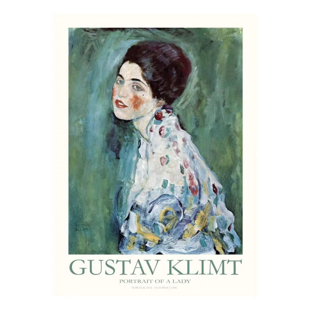 Farvefin vintageplakat med den fineste tegning af en siddende kvinde. Kunstplakaten ‘The Lady’ er skabt af kunstneren Gustav Klimt. Plakaten er produceret på miljøvenligt kvalitetspapir, som har en lang levetid og smuk farvegengivelse. Plakaten er designet med en integreret passepartout omkring motivet.