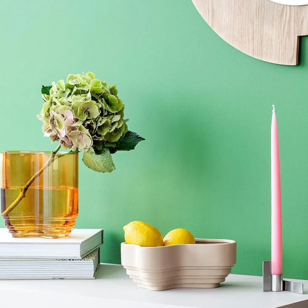 Vasen er håndlavet i mundblæst glas, hvorfor der kan forekomme mindre variationer i farve, struktur og størrelse. Ikke desto mindre er det en charme ved produktet, som gør hver enkelt vase helt unik.