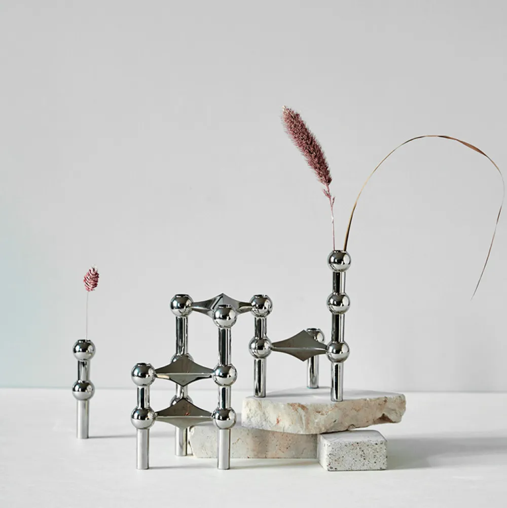 Denne smukke, lille vase er en af de nyeste tilføjelser til Nagel-serien. Vasen tilfører et yndigt udtryk til det ellers klassiske design, og den kan både kombineres med lysestagen, skålen og standeren.