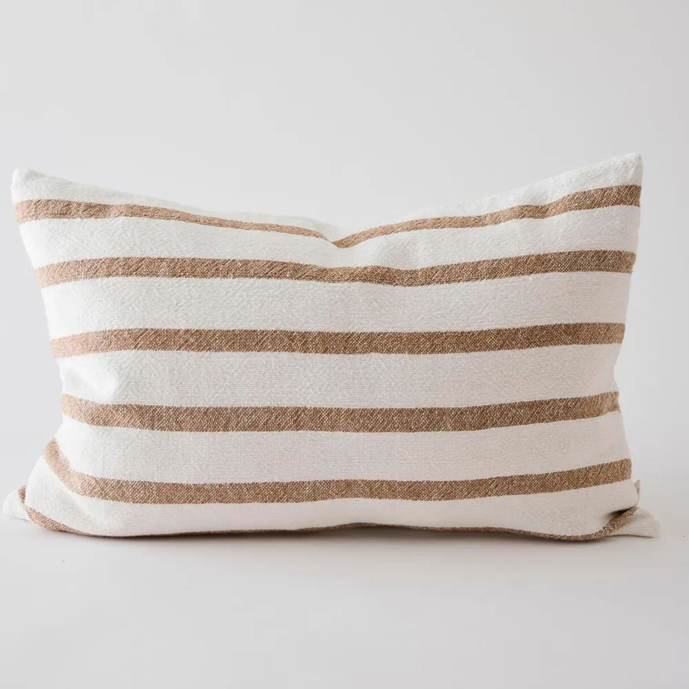 Enkel og minimalistisk pude, der tilføjer et tidløst touch til boligindretningen. Puden er smukt vævet i en kombination af blød bomuld og kraftigt hør. Med sin hvide grundfarve og elegante striber i den fineste farvenuance, er den ideel til både moderne og klassiske indretningsstile. Pudebetrækket har en skjult lynlås i bunden, hvilket sikrer et stilrent udtryk.