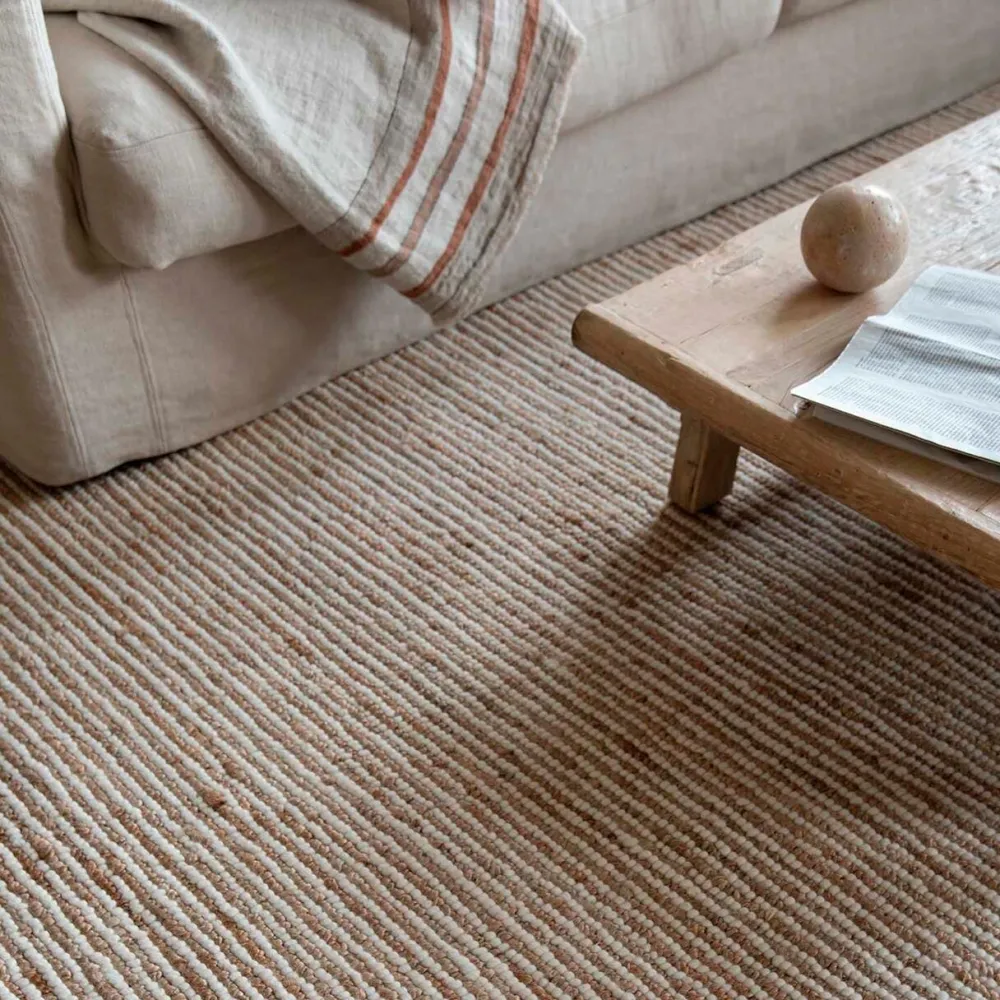 Enkelt og naturskønt tæppe i bæredygtige materialer. Tæppet er håndvævet i hamp og uld, som både er smudsafvisende og slidstærke. Hvert tæppe er håndvævet og plantefarvet, hvorfor der kan forekomme variation i både form og farve. Hampfibre er lysfølsomme, hvorfor tæppet med tiden kan famle, såfremt det placeres i direkte sollys. Tæppet kan med fordel benyttes i entréen, køkkenet, stuen eller soveværelset.
