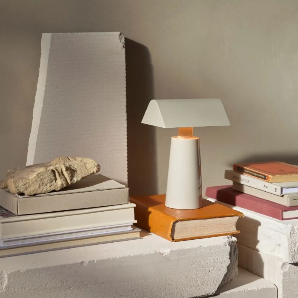 En praktisk løsning på de stadigt mere slørede grænser mellem arbejde og hjem, den bærbare Caret genskaber de lineære silhuetter af de klassiske, grønskyggede designs – kendt som ‘bankers lamper’ – som findes i historiske biblioteker. Fremstillet udelukkende af lakeret stål, designet har en afrundet bund og en lang, pyramideformet top, der udsender et blødt, diffust lys. Lampen kommer i to nutidige farver: Mørk Bourgogne og Silkegrå.