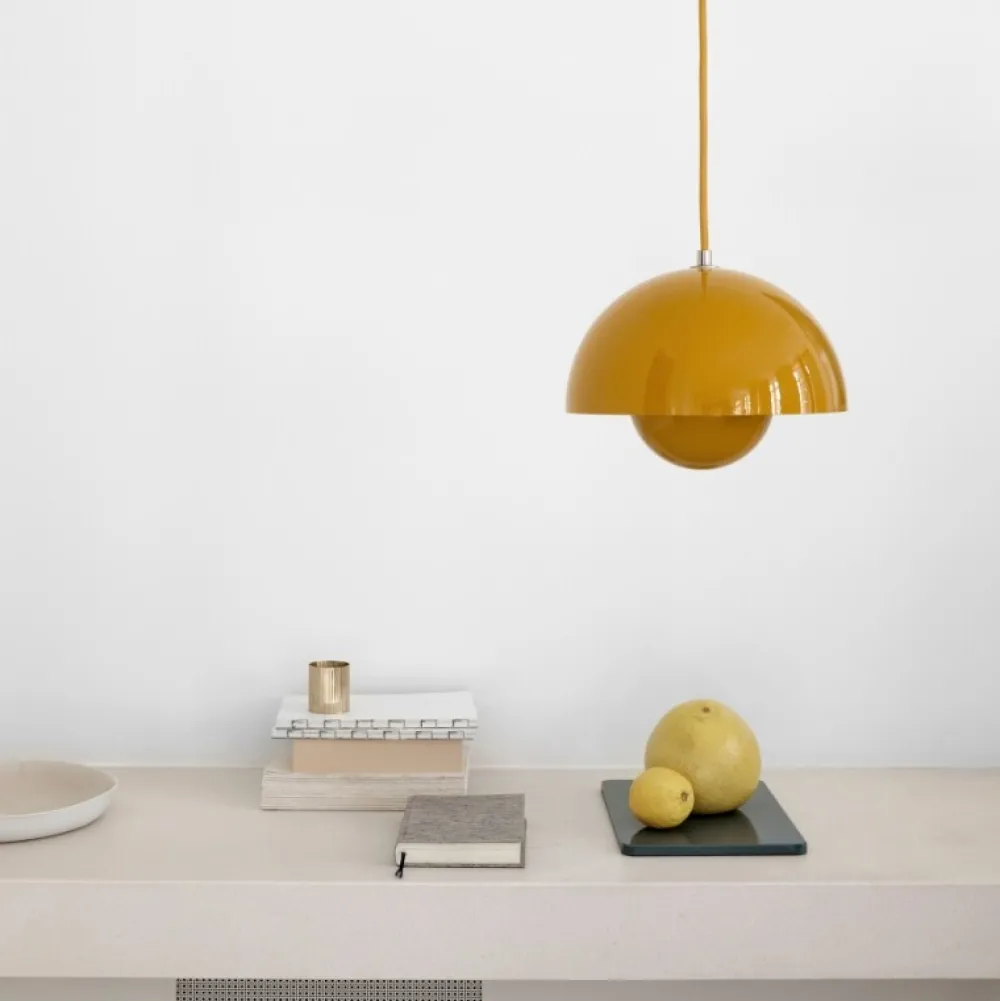 Inspirationen til den populære Flowerpot-serie har grobund i den farverige Flower Power-bevægelse fra slutningen af 1960’erne. Lampen er designet af Verner Panton, som var en af de mest fremadrettede talenter i sin tid. Tankegangen bag designet var, at omfavne en mere åben, moderne mentalitet, som fremmede fred og harmoni – hvilket lampen afspejler.