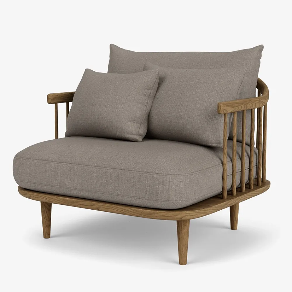 Space Copenhagen Fly-serien signalerer en skulpturel tilgang til design – uden at ofre komfort. I modsætning til andre lænestole i skandinavisk designhistorie, pålægger Fly-serien ikke en særlig kropsholdning. Selve sædet er optimeret til komfort med løse hynder til hyggen, som kan indrettes efter behov.
