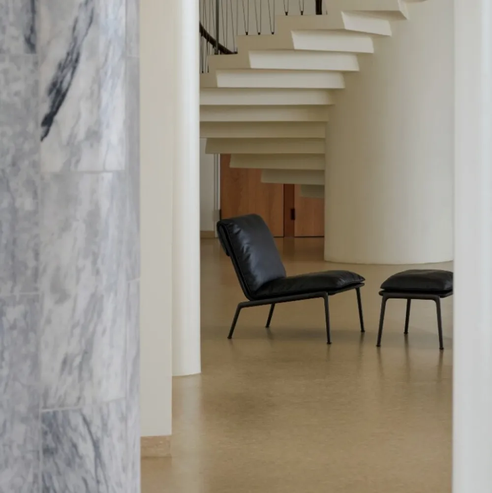Fodskamlen er beregnet til at fungere sammen med Muno loungestolen og giver et ekstra niveau af komfort i lounging-miljøer. Den står i den optimale højde for begge stolemodeller og tilbyder lækker støtte til forlænget afslapning. Derudover kan designet også bruges som puf eller ekstra siddeplads, når man er vært for større grupper.