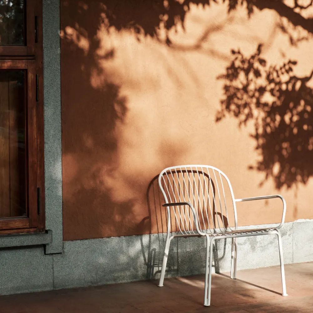 Smuk havestol, som blander friluftsliv med skulpturelle silhuetter. Gitteret i sæde og ryg giver et smukt samspil mellem lys og skygge. Stålstellet sætter scenen for en smuk, behagelig og stabelbar havestol. Stolen kan forenes med en matchende hynde for størst mulig siddekomfort.