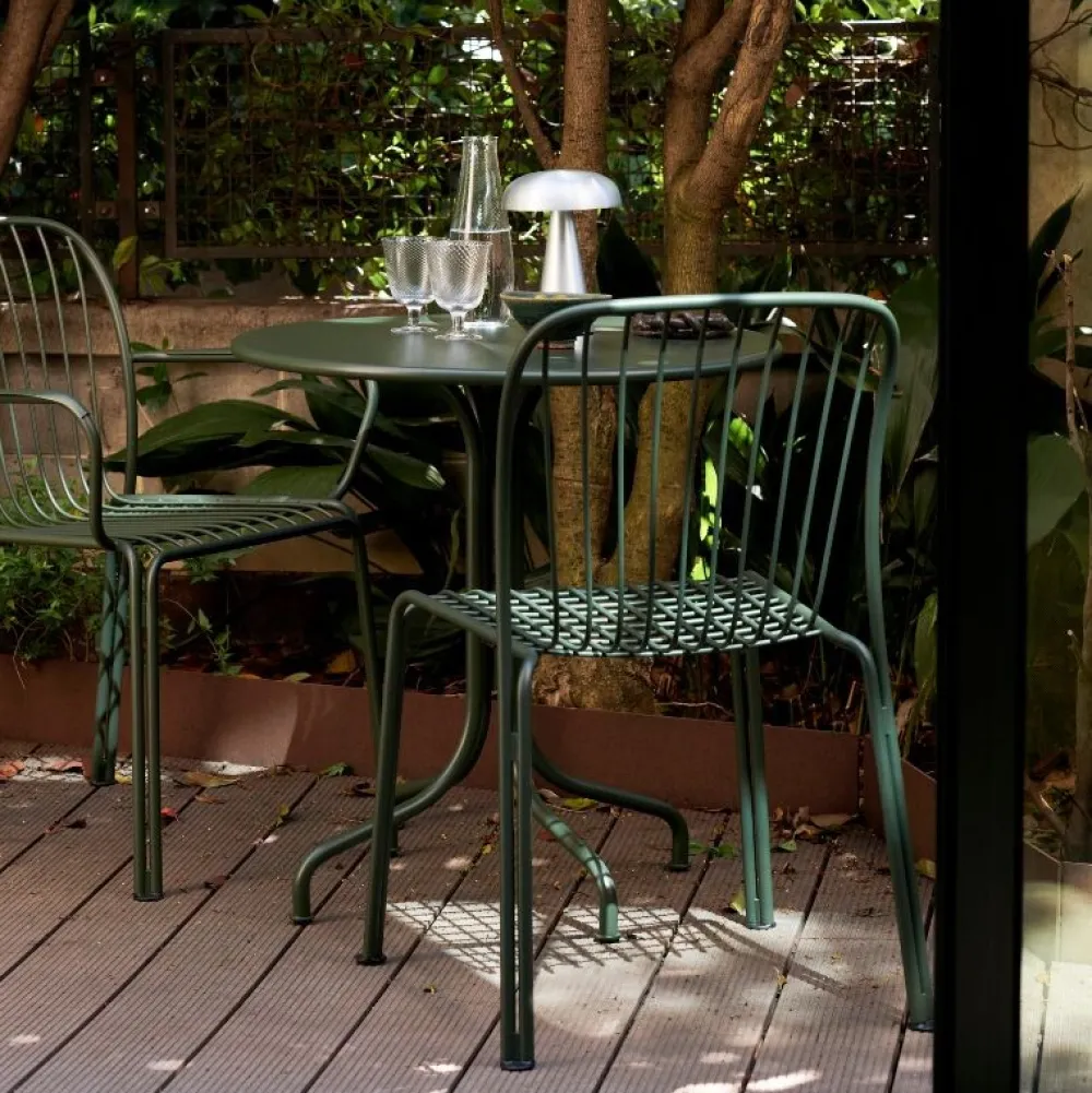 Elegant havestol, som blander friluftsliv med skulpturelle silhuetter. Gitteret i sæde og ryg giver et smukt samspil mellem lys og skygge. Stålstellet på den stabelbare stol sætter scenen for en lækker og alsidig havestol. Stolen kan forenes med en matchende hynde for størst mulig siddekomfort.