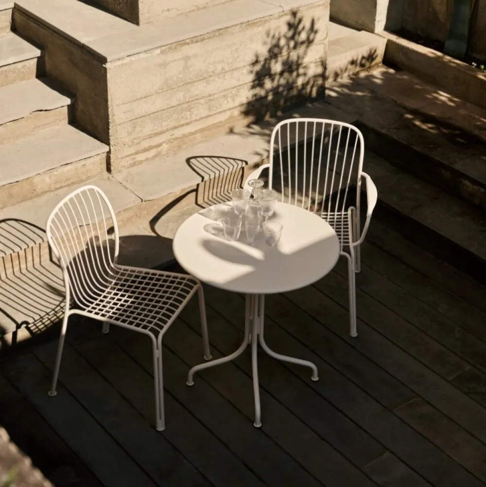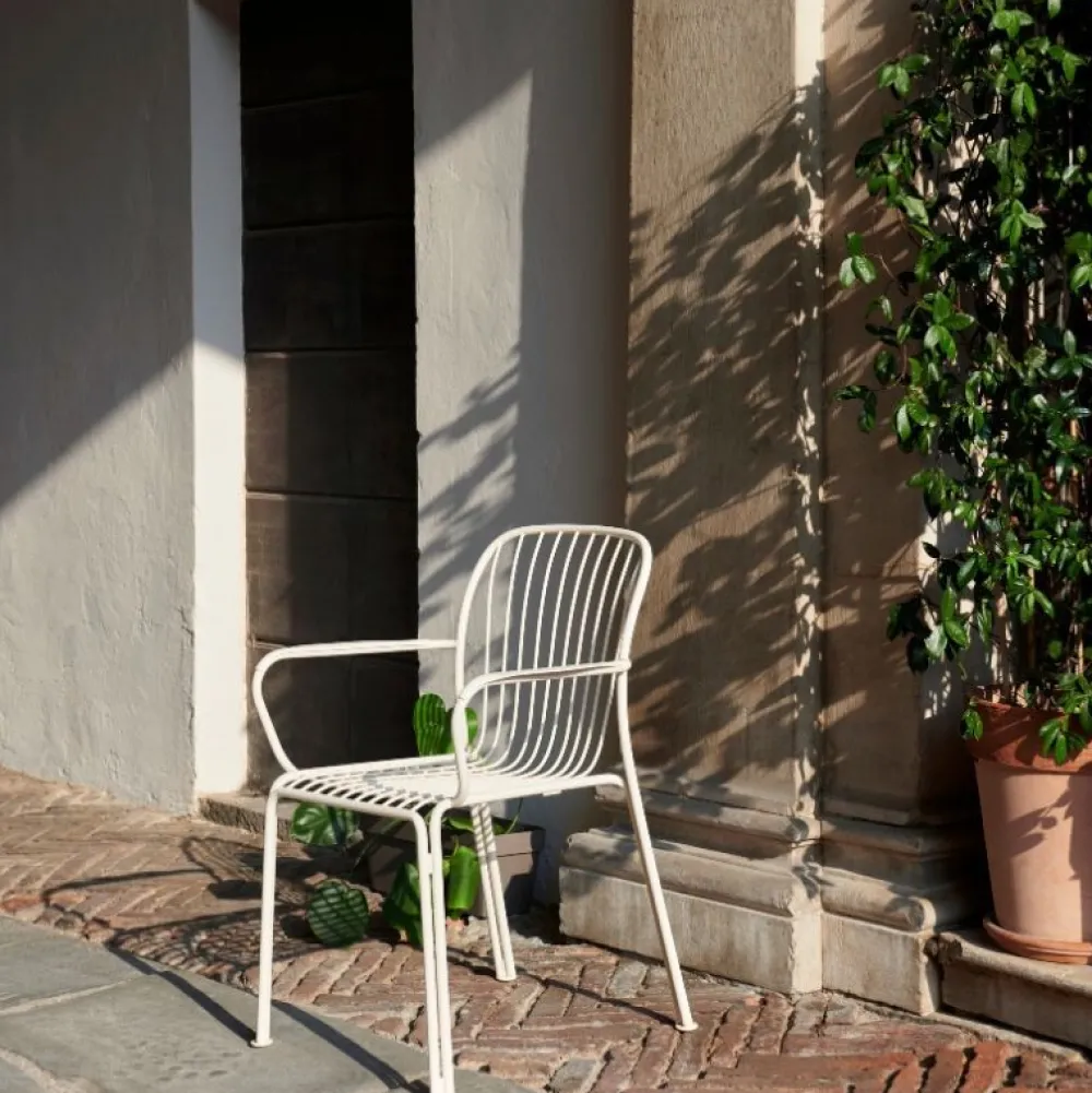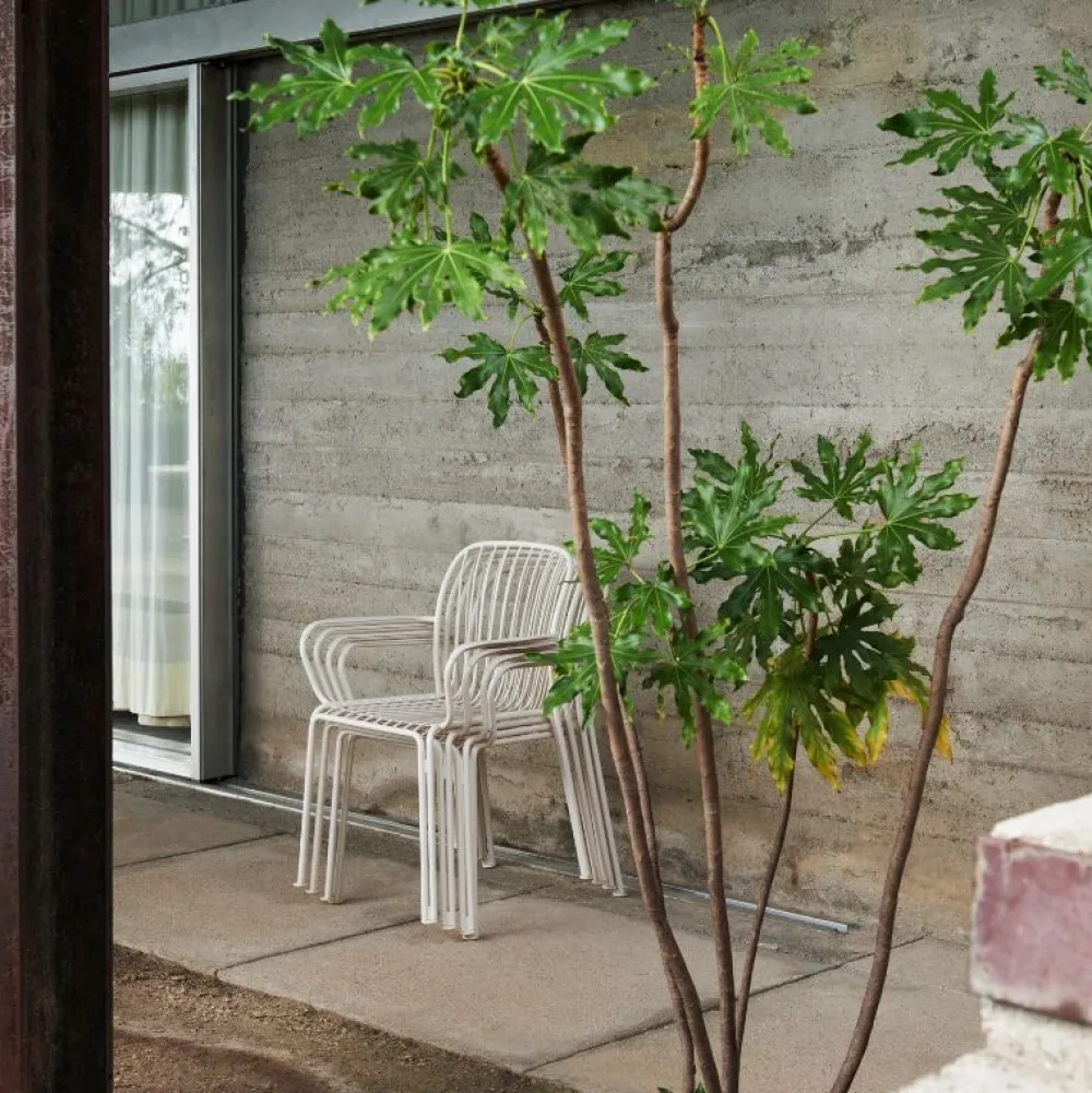 Elegant og lækker havestol, som blander friluftsliv med skulpturelle silhuetter. Gitteret i sæde og ryg giver et smukt samspil mellem lys og skygge. Stålstellet på den stabelbare stol sætter scenen for en elegant og alsidig havestol. Stolen kan forenes med en matchende hynde for størst mulig siddekomfort.