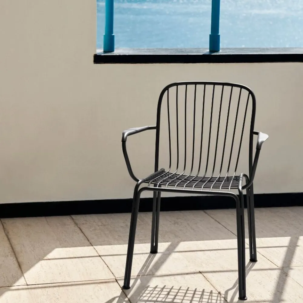 Lækker havestol, som blander friluftsliv med skulpturelle silhuetter. Gitteret i sæde og ryg giver et smukt samspil mellem lys og skygge. Stålstellet på den stabelbare stol sætter scenen for en elegant og alsidig havestol. Stolen kan forenes med en matchende hynde for størst mulig siddekomfort.