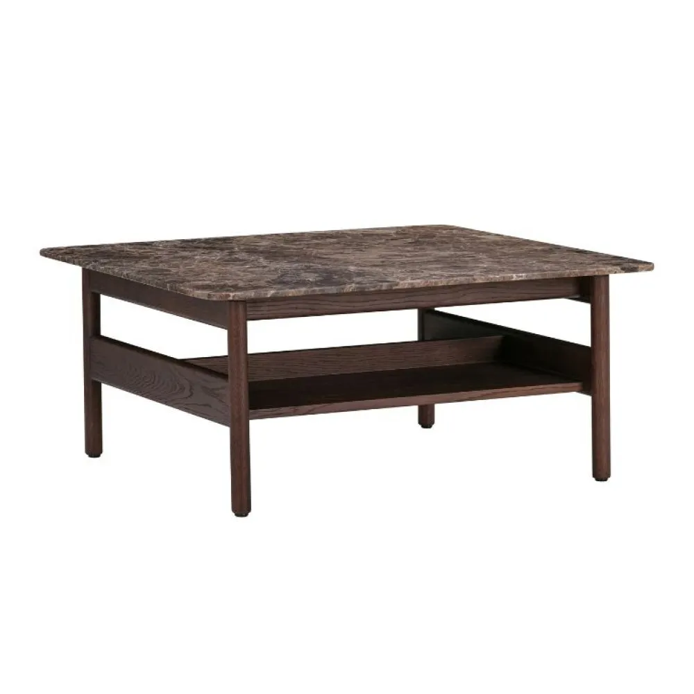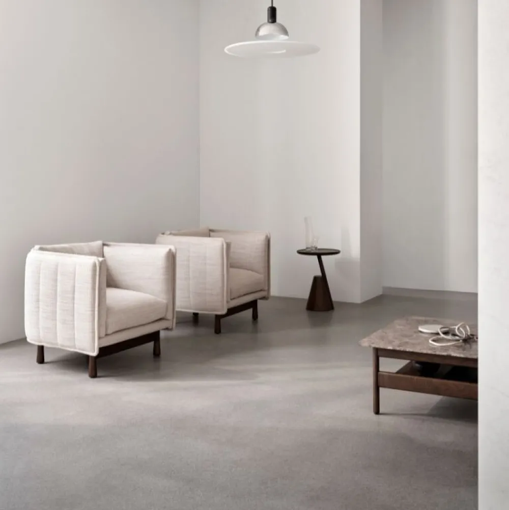 Raffinerede proportioner i elegant balance. Designer Jonas Wagell skaber en blød balance mellem materialerne. Varmen i det mørke træ og den brune Emperador-marmorbordplade fremmer en sanseoplevelse og tilføjer diskret elegance til ethvert rum.