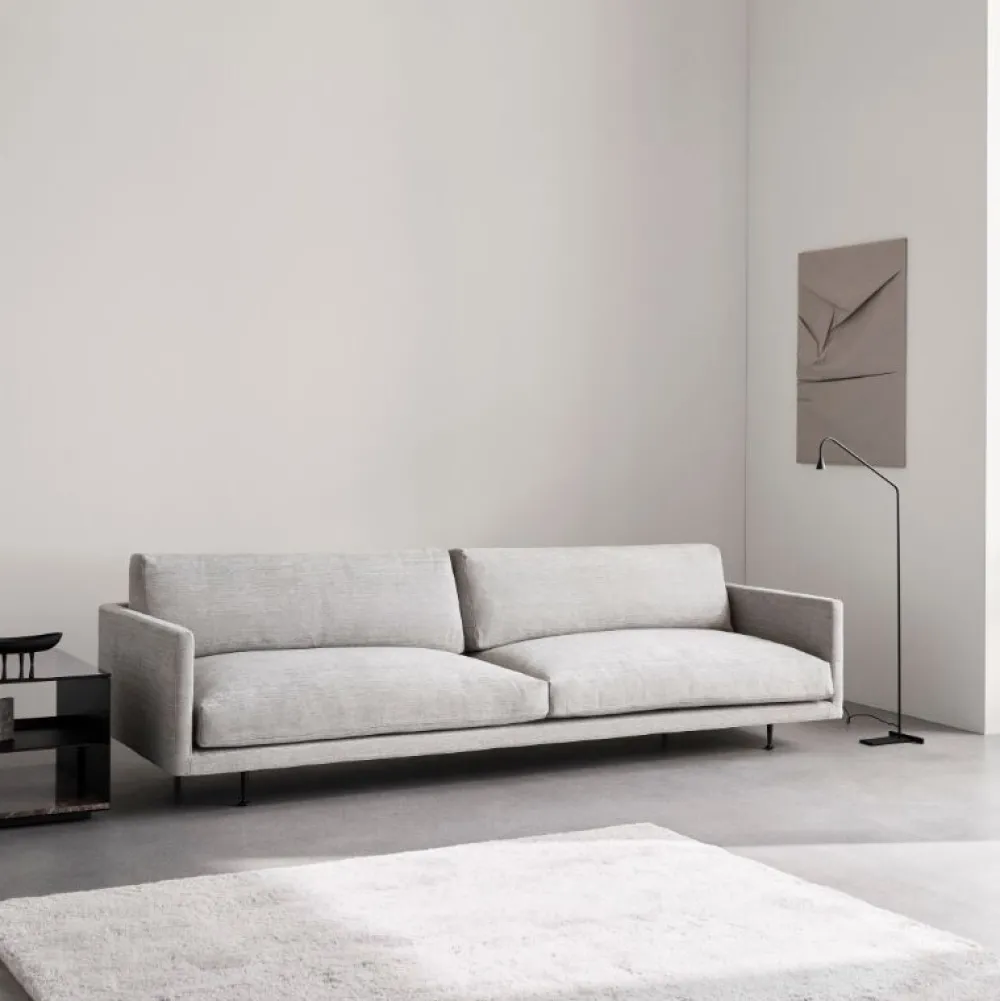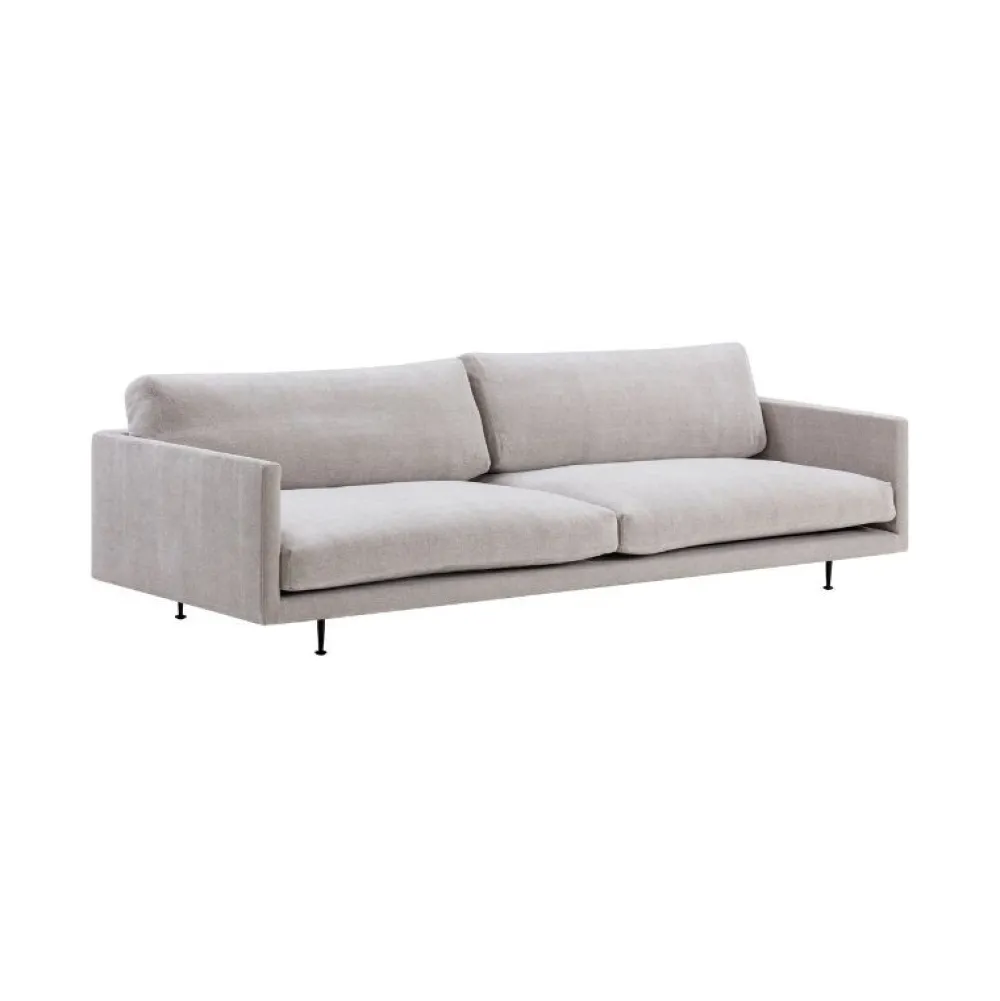 Elegant sofa der udstråler komfort. Maho er en voluminøs lavtliggende sofa som hviler oven på et slankt og skarpt defineret stel i sort pulverlakeret stål. Designet fås i to sædehøjder og en række polstringsmuligheder fra Wendelbos kuraterede redigering af tekstiler og læder.
