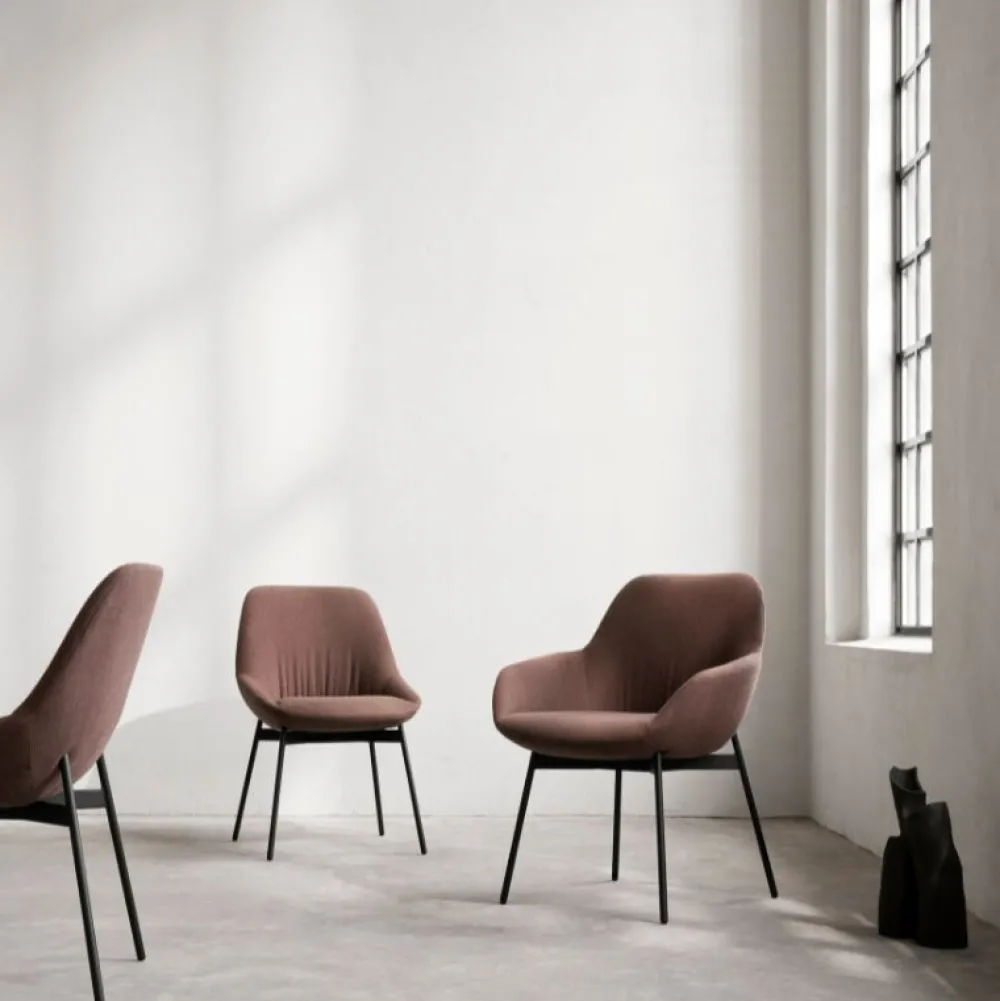 Designet af Hoffmann Kahleyss Design, Sinum Chair er defineret af en luftig æstetik og en generøst polstret skal, holdt i et blidt greb af et stel i sort pulverlakeret stål. Afledt af det latinske ord for ‘lomme’, fylder Sinum-stolen passende meget lidt i et rum. Sædet er kendetegnet ved en buet lomme af polstring, der sikrer kompromisløs komfort, omsluttet af enten lave eller høje armlæn.