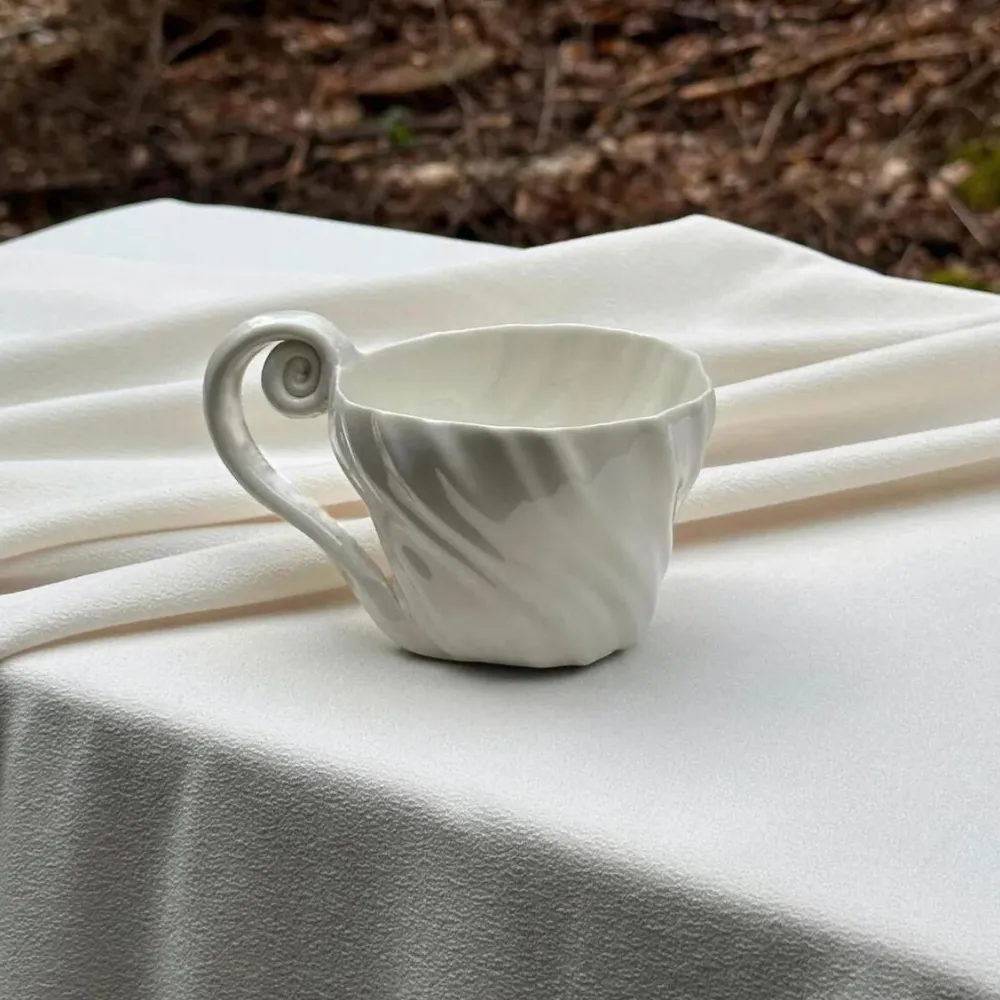 Yndefuld og håndlavet kop i det fineste hvide porcelænsler. Marée er fransk og betyder ‘tidevand’, hvilket ligeledes er tidsvandskoppens inspirationskilde. Koppen er således inspireret af Vadehavets bølgende sandbund, når vandet har trukket sig tilbage, hvormed den nøgne havbund blottes. Dét er det særlige ved dette foranderlige område. Designet er skabt med tidløshed for øje og kærlighed til håndværk, hvorfor der kan forekomme små variationer fra kop til kop.