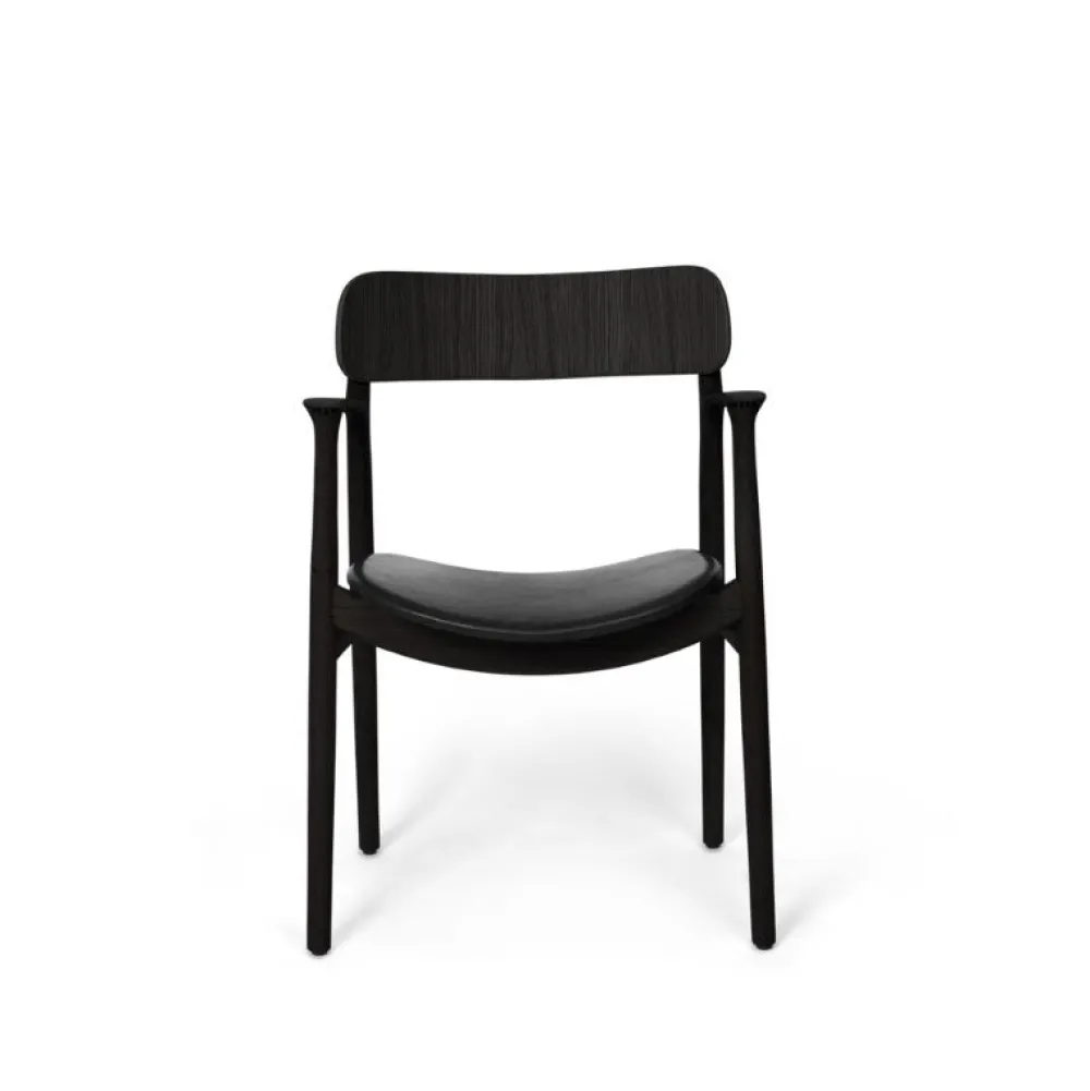 Komfortabel træstol med elegante detaljer. Stolens sæde og ryglæn er elegant designet til at give støtte og god bevægelsesfrihed i forskellige siddestillinger.