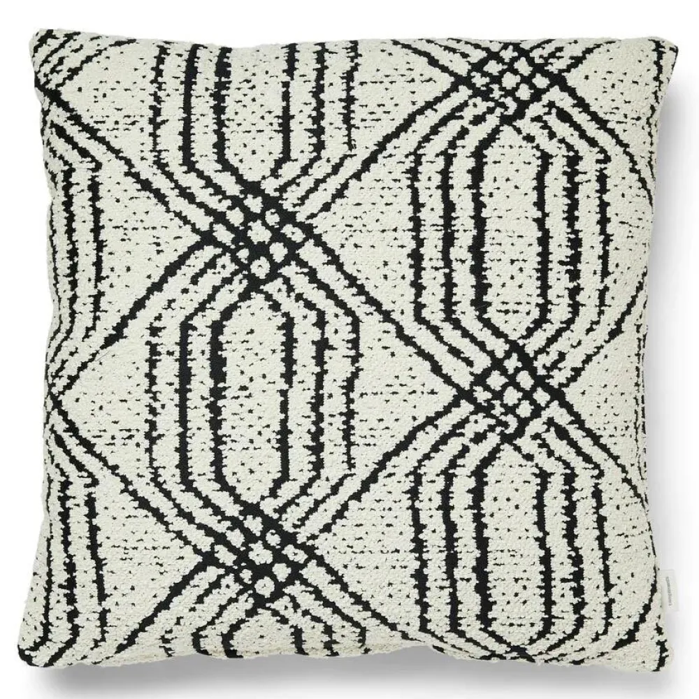Moderne og grafisk pude i et klassisk udtryk. Puden er ideel, såfremt man ønsker at skabe et personligt hjem, men fortsat bevare en rød tråd i indretningsstilen. Nettet af mørke linjer kombineret med den bløde og lette bouclé tilføjer en trendy og kosmisk spænding til boligindretningen. Puden er vævet i højeste kvalitet for lang og slidstærk holdbarhed.