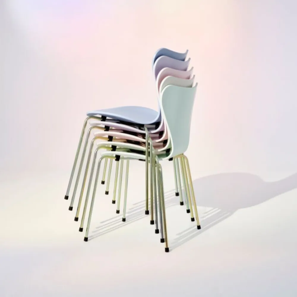 I 2025 fejrer Fritz Hansen syv årtier af Serie 7™ – et ikonisk design, der er blevet et verdenskendt møbeldesign. Farvepaletten “7:14 AM” er inspireret af morgenlyset i Danmark, hvorfor nuancerne er blide, reflekterende og en smule kølige. De subtile og udtryksfulde farvenuancer er velegnet til den nutidige appel af rene, bløde pastelfarver, der komplementerer indretningen.