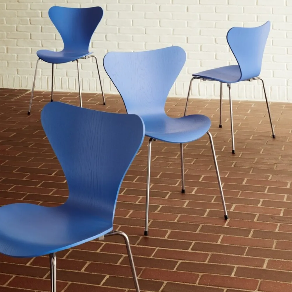 Serie 7™ designet af Arne Jacobsen er den mest solgte stol i Fritz Hansens historie og måske i møbelhistorien. Stolen er fremstillet af ni lag formpresset finér, og med denne stol har Arne Jacobsen formået at formgive en stol, der både indeholder styrke, fleksibilitet og holdbarhed uden at gå på kompromis med dens slanke og æstetiske udseende.