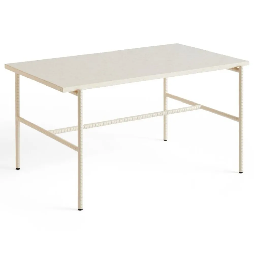 Sylvain Willenz’s rebar er en serie af sofa-, side- og bakkeborde, som sætter den forstærkede stålstangsramme sammen med marmortoppe og metalbakker for at skabe en afbalanceret æstetik. Bordene fås i forskellige størrelser i runde, firkantede og rektangulære former, med bordplader og stel i forskellige farvemuligheder.