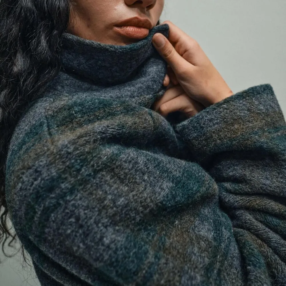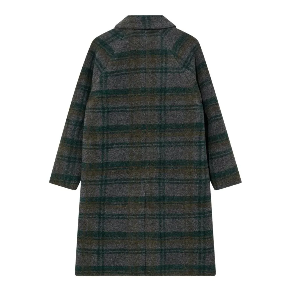 Sofistikeret uldfrakke, der indfanger balancen mellem komfort og stil. Den afslappede, rummelige pasform og raglanærmer giver frihed til bevægelse, mens de dæmpede toner og italienske uldtekstur tilfører dybde og elegance. Et alsidigt item med klassisk chare og nutidig attitude, der nemt kan integreres i enhver garderobe.