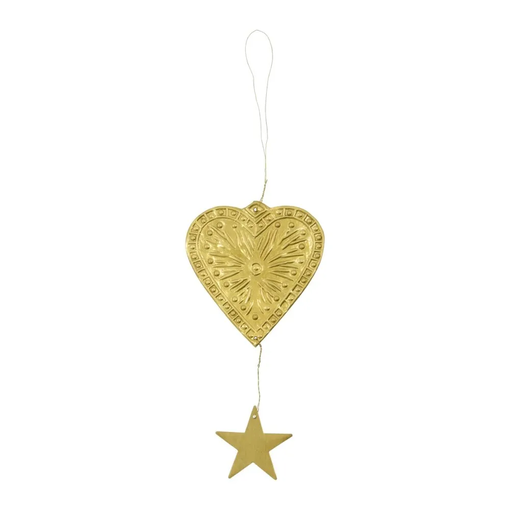Fine ornamenter, der tilfører juleudsmykningen både varme og elegance. Håndlavede med omhu, præsenterer sættet tre unikke designs: en fugl, et hjerte og en stjerne, hver med en lille stjerne, der hænger dekorativt nedenunder. Den varme messingfinish skaber et klassisk og raffineret udtryk, ideelt til grene, vinduer eller juletræet. Ornamenterne giver en stemningsfuld detalje, der gør julen ekstra festlig.