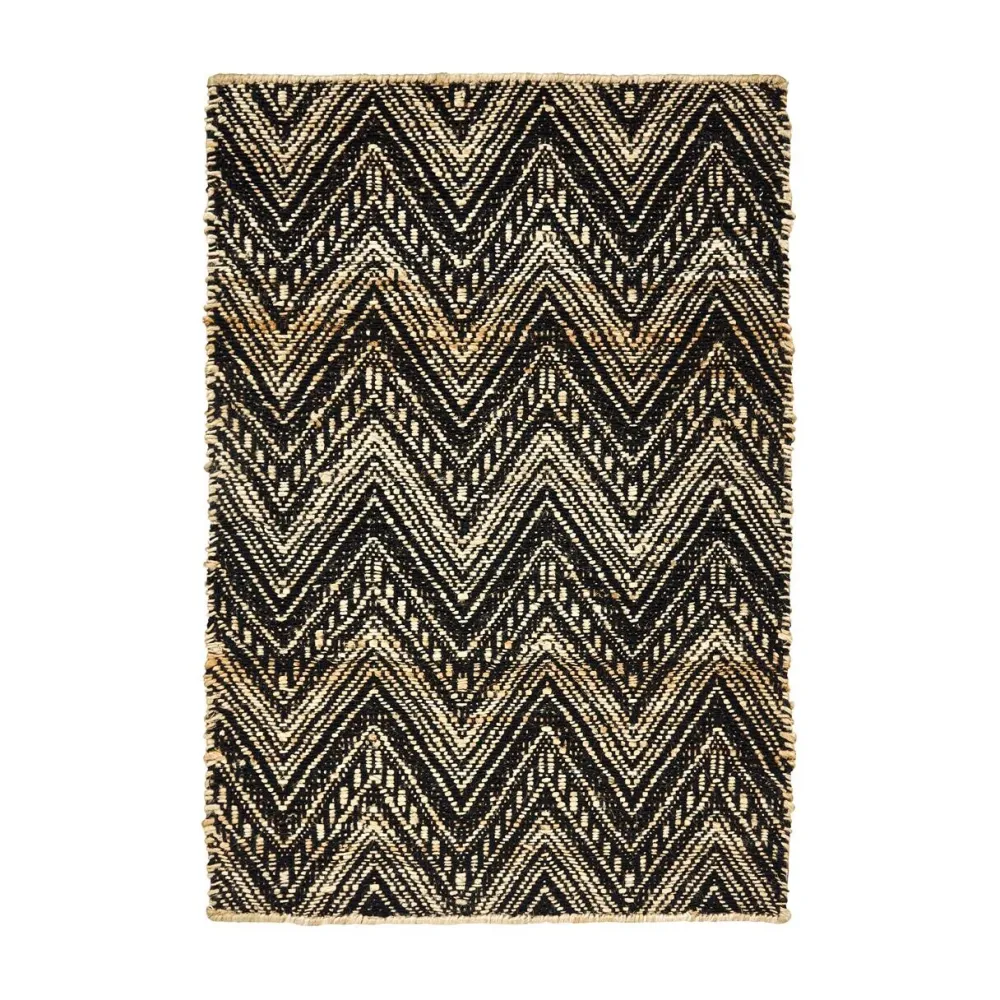 Håndvævet dørmåtte i den fineste bomulds- og juteblanding. Dørmåtten er udført med et fængslende etnisk mønster i naturlige og sorte nuancer. Måtten er et ideel at placere ved hoveddøren, indgangen til terrassen eller i et mindre rum, idet den både er funktionel og stilfuld. Dørmåtten tilføjer en varm og moderne æstetik og den håndlavede kvalitet sikrer en karakteristisk tilføjelse til hjemmet.