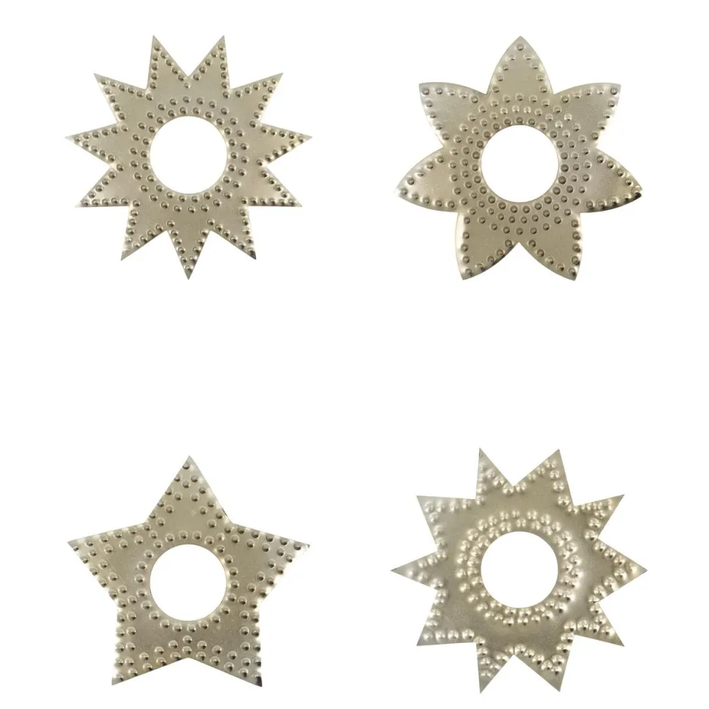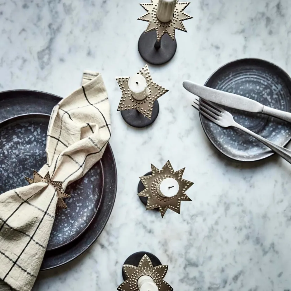 Tilfør lysestagerne et strejf af elegance med disse ringe til stearinlys. Håndlavede med fire unikke designs og smukke stamped mønstre, skaber de charme i hjemmets juledekoration. Det dekorative sæt kombinerer funktionalitet med elegance og er ideel til julens stemningsfulde belysning. Et stilfuldt tilbehør, der løfter dekorationen og skaber en varm, indbydende atmosfære i hjemmet.