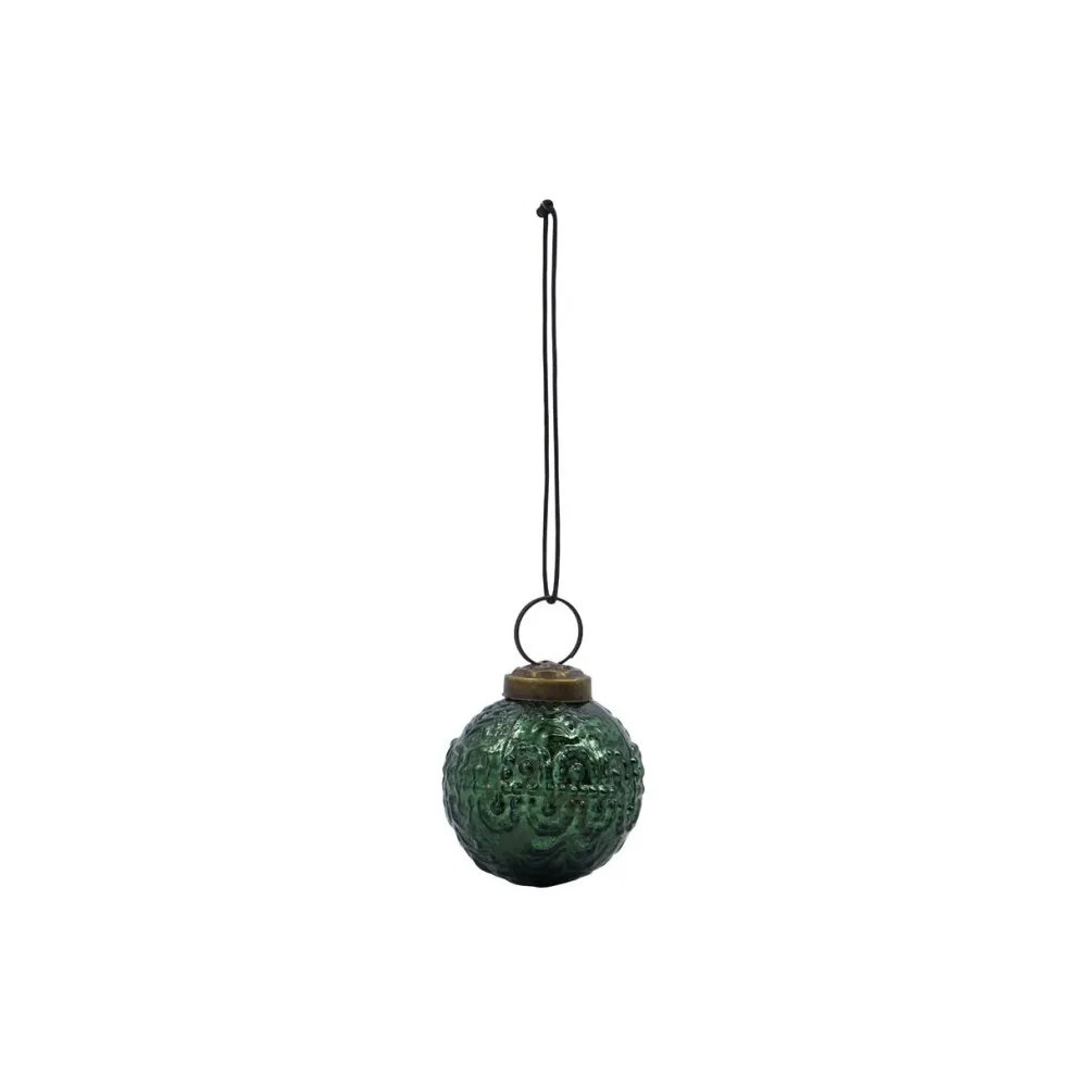 Kugleformet ornament, der forener klassisk skønhed med vintage-inspireret charme. Julekuglen er håndlavet og dekoreret med et elegant mønster, der reflekterer lyset på smukkeste vis. Ornamentet tilfører varme, tradition og finesse til enhver juleudsmykning – ideel til både juletræet, guirlanden eller en dekorativ.