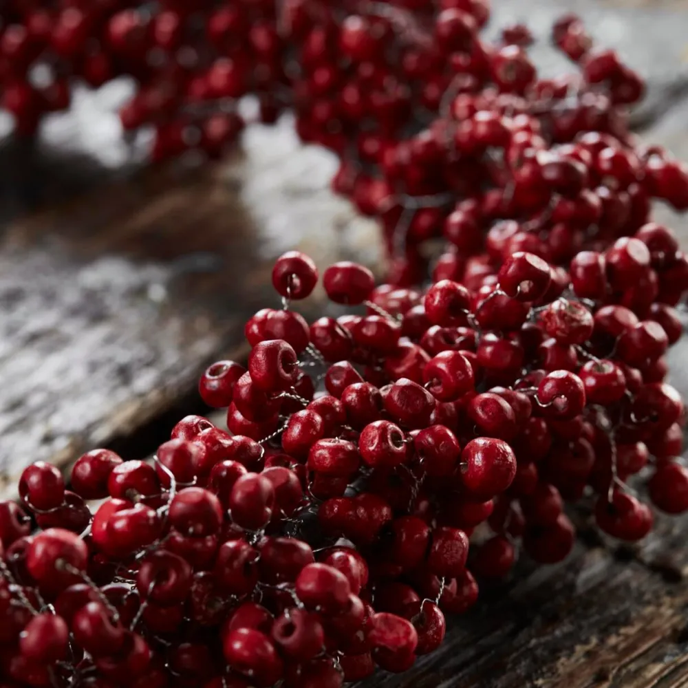 Farvefin krans, der skaber en klassisk julestemning. Kransen består af smukt arrangerede træperler på en solid metalramme, hvor hver rød perle er omhyggeligt snoet på plads for et naturtro og elegant udtryk. Den er ideel som dekoration i entréen, hvor den byder gæsterne velkommen, eller som et stilfuldt element på stuevæggen. For et mere fyldigt look kan perlerne formes og justeres efter ønske, hvilket gør den fleksibel til forskellige dekorative løsninger.