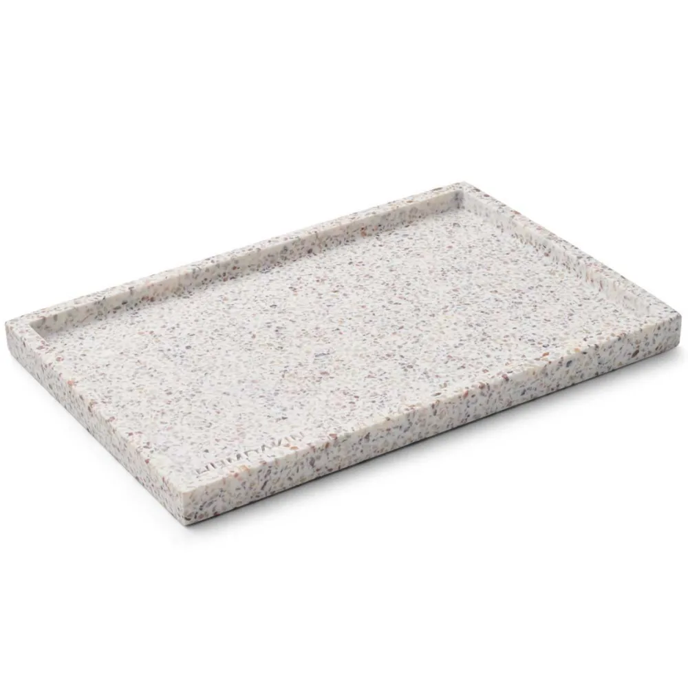 Moderne og dekorativ bakke i terrazzo. Bakken kan benyttes til at skabe en smuk styling eller stilleben i hjemmet. Man kan eksempelvis placere stearinlys og små blomsterarrangementer herpå, eller benyttes den i køkkenet eller på badeværelset til ens yndlingsprodukter.
