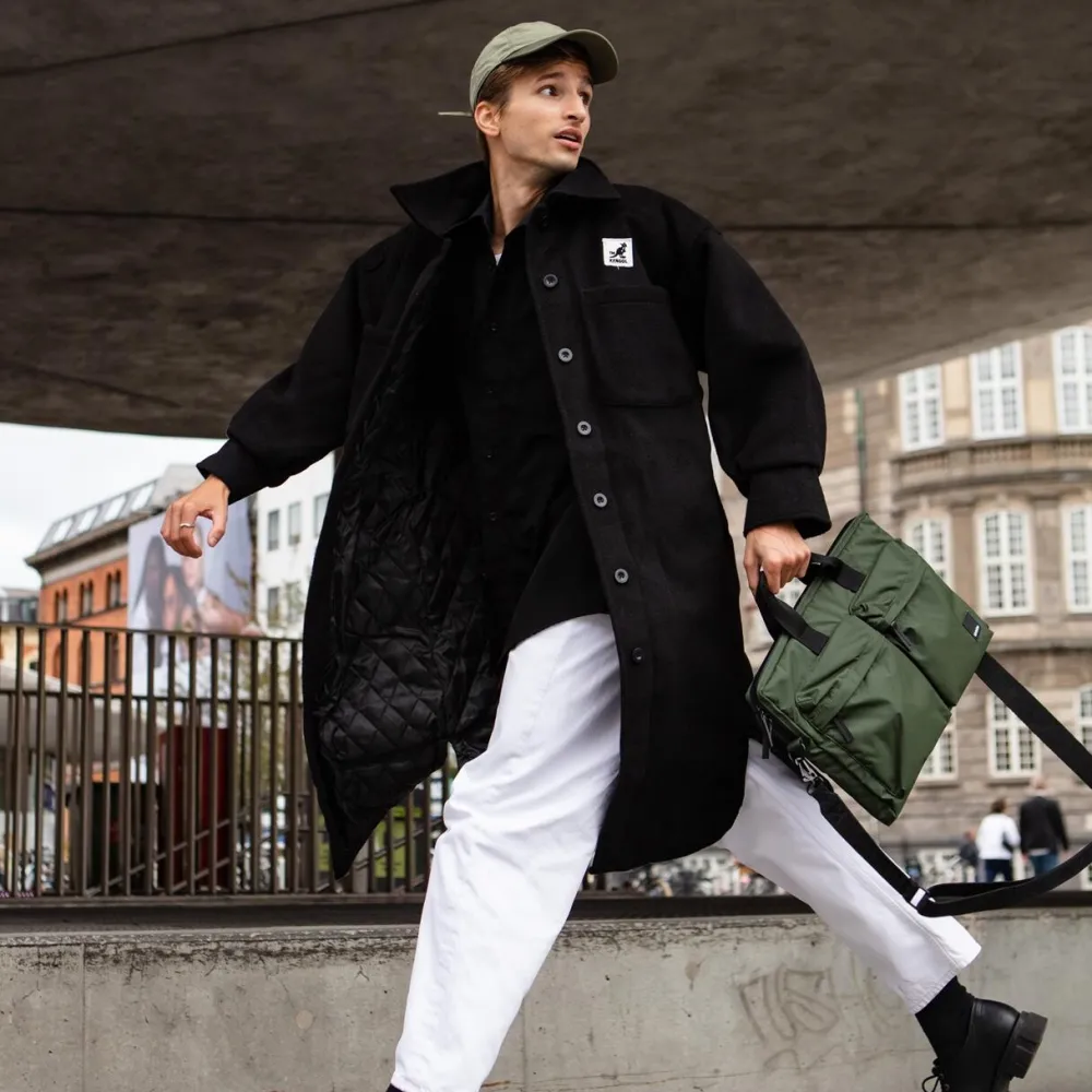 ‘SAGE’ er en slank computertaske, som er ideel til skole eller arbejde. Tasken er udført med flere indvendige lommer, samt en stor frontlomme, hvilket sikrer rummelighed og plads. Kombinationen af nylonkvalitet, sort metalbeslag og bio-baseret alternativ svampelæder gør tasken velegnet til enhver professionel lejlighed. Tasken er tilmed oplagt at medbringe på længere ture, som følge af trolleyremmen på bagsiden.