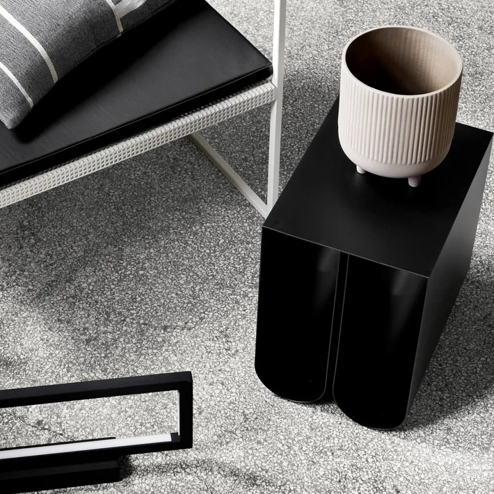 Trebenet urtepotte, som tilfører et karakteristisk og flot særpræg til enhver boligindretning. Urtepotten hæver sig på sine små ben, hvilket både er praktisk og funktionelt. Indvendig er skålen glaseret med en transparent film som gør, at den kan modstå vand. Urtepottens yderside har et smukt og kendetegnende riflet mønster præget i overfladen. Urtepotten trækker desuden en klar reference til den nordiske designtone. Kendetegnende for Kristina Dam Studio er, at designet er minimalistisk, enkelt, skandinavisk og arkitektonisk, hvor rene linjer, holdbare materialer og naturlige farver er i fokus.