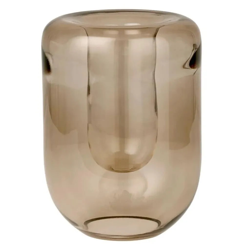Stor og mundblæst glasvase med en blød og minimalistisk silhuet. Glasvasen er et iøjnefaldende stykke glaskunst, idet den både tjener som skulptur og blomstervase. Farvenuancen er elegant og stilfuld, hvilket på fineste vis understøtter vasens formsprog, der demonstrerer et unikt samspil imellem form og funktion.