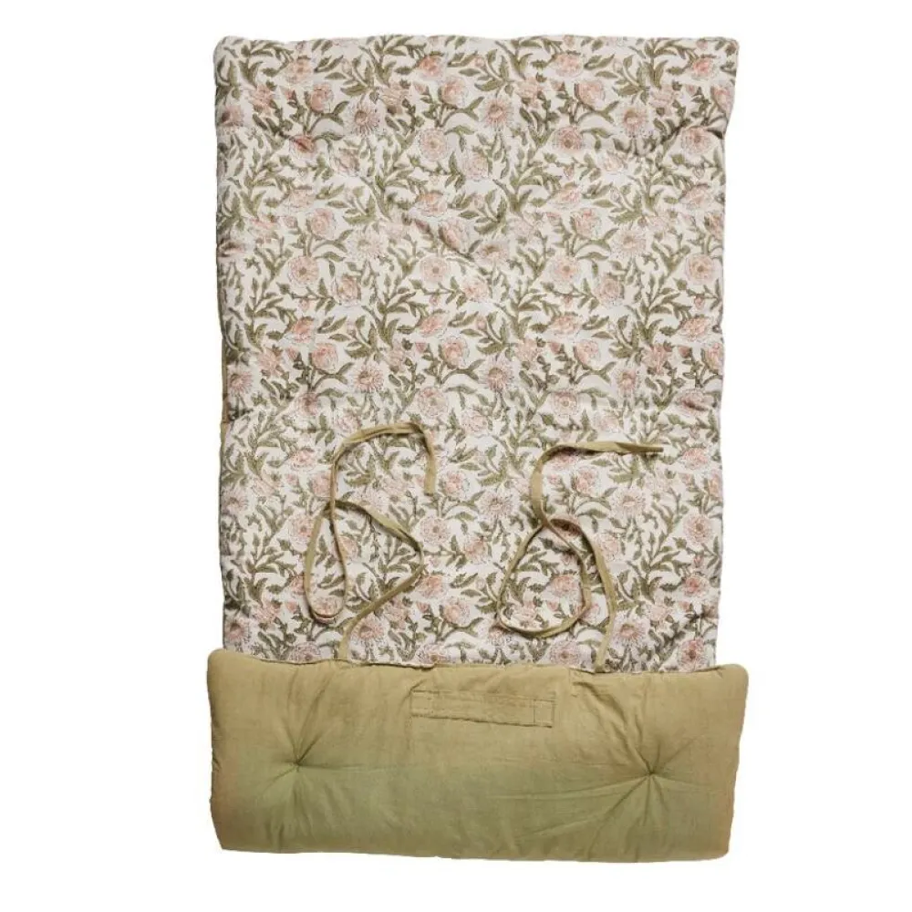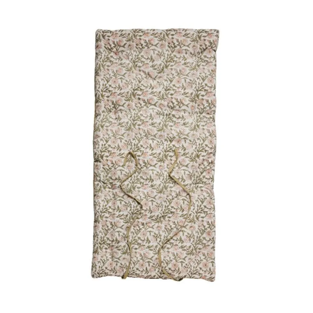 Multifunktionel madras, der både er komfortabel, alsidig og æstetisk. Madrassen er håndlavet i bomuld, hvorfor både komfort og bæredygtighed tilsikres. Den ene side er prydet med et sirligt bloktrykt mønster, der hylder det klassiske kunsthåndværk, mens bagsiden er ensfarvet, således udtrykket kan skiftes efter behov. Foruden at være fin er madrassen praktisk, idet den kan benyttes som gulvpude, loungeunderlag eller som en ekstra siddeplads – både inde og ude.