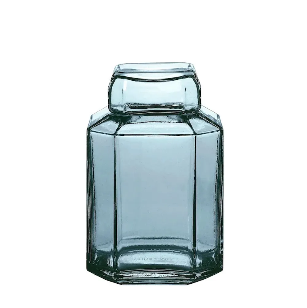 Smuk bon bonniere i mundblæst glas med en flot og stilren blå farve. Den fine glaskrukke her et elegant og feminint look, der vil pynte så flot i soveværelset eller på badeværelset. Brug den smukke glaskrukke til opbevaring af alverdens nips.