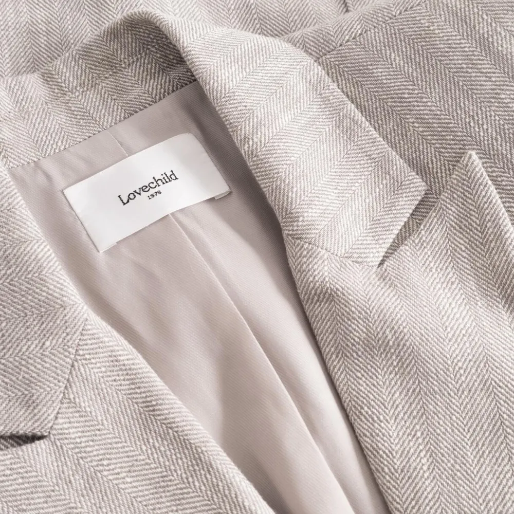 Træd ind i sæsonen med stil i en blazer, der er definitionen på underspillet luksus. Med sit skarpe snit og afslappede fit kombinerer den det maskuline og feminine i en harmonisk balance, der løfter ethvert outfit. Blazeren er skabt i en struktureret kvalitet, der falder smukt og giver et sofistikeret udtryk. Den oversized pasform giver et afslappet udtryk, mens den spidse revers og de paspolerede lommer tilfører et skarpt og stilrent look. Den dobbeltradede knaplukning understreger blazeren som et statement-piece i enhver garderobe.