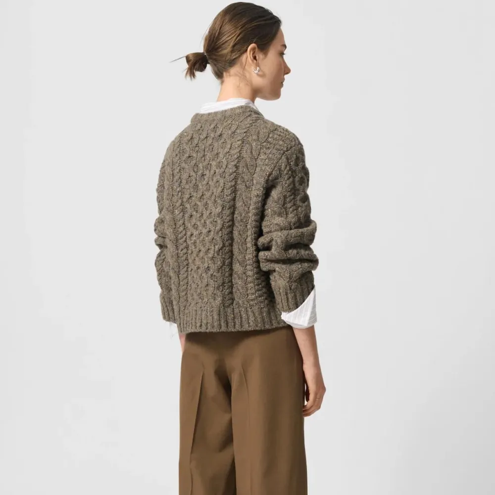 Blød og alsidig sweater, der på fineste vis forener komfort og stil. Den fine zinnia-farve bringer varme og liv til garderoben, mens det klassiske kabelstrik og de fine ribkanter tilføjer tekstur og personlighed. Den oversized silhuet og de lavt satte skuldre giver et moderne, afslappet udtryk, mens den luksuriøse blanding af alpaka, RWS-certificeret merinould og genanvendt nylon sikrer blødhed, varme og holdbarhed.