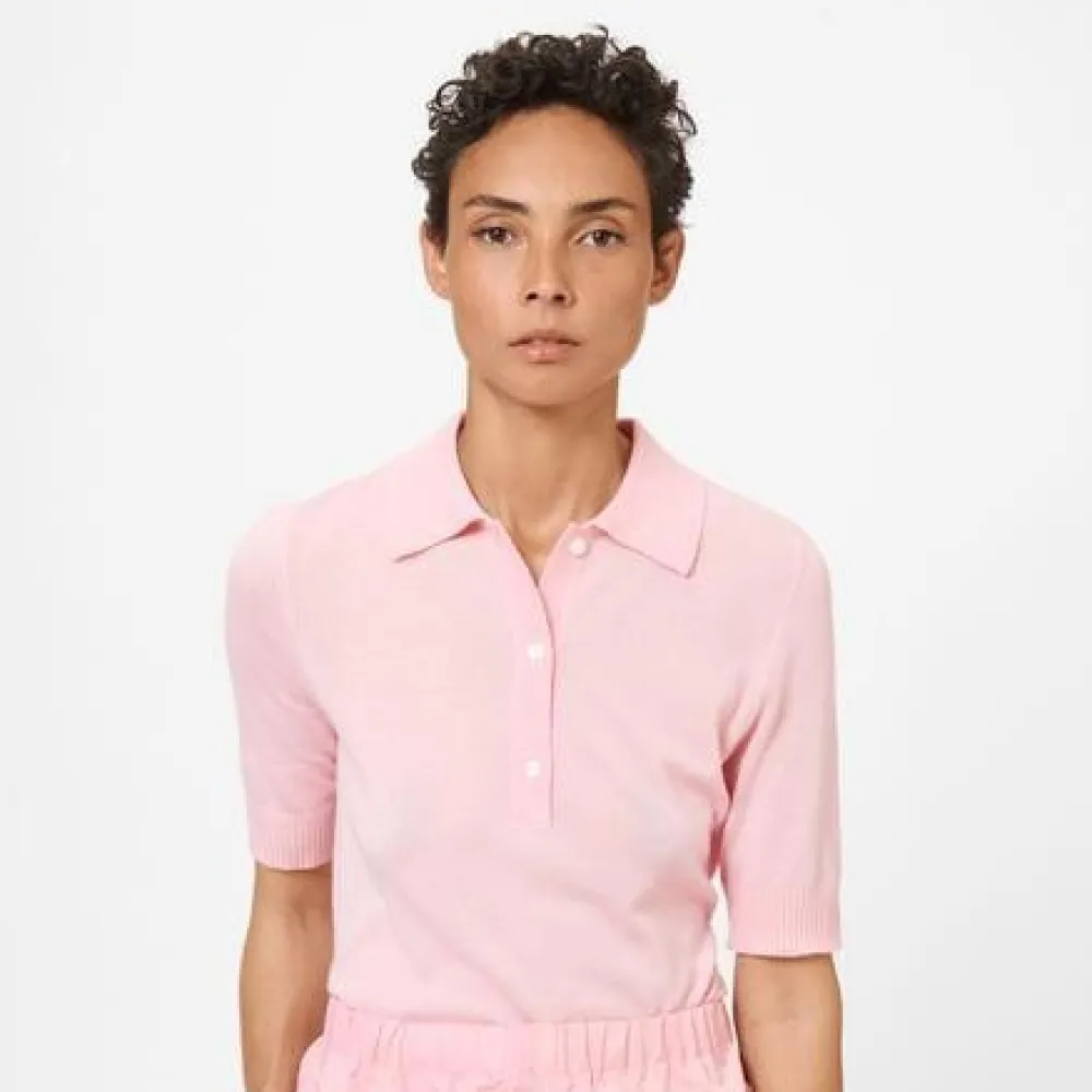 Enkel og farvefin strikbluse, der smukt forener komfort og stil. Toppen er udført med en klassisk polokrave og en diskret knaplukning, som både tilføjer funktionalitet og elegance. Det broderede logo foran tilfører endvidere et eksklusivt og subtilt statement. Blusen er fremstillet i blød og luksuriøs merinould, hvorfor den sikrer varme og komfort.