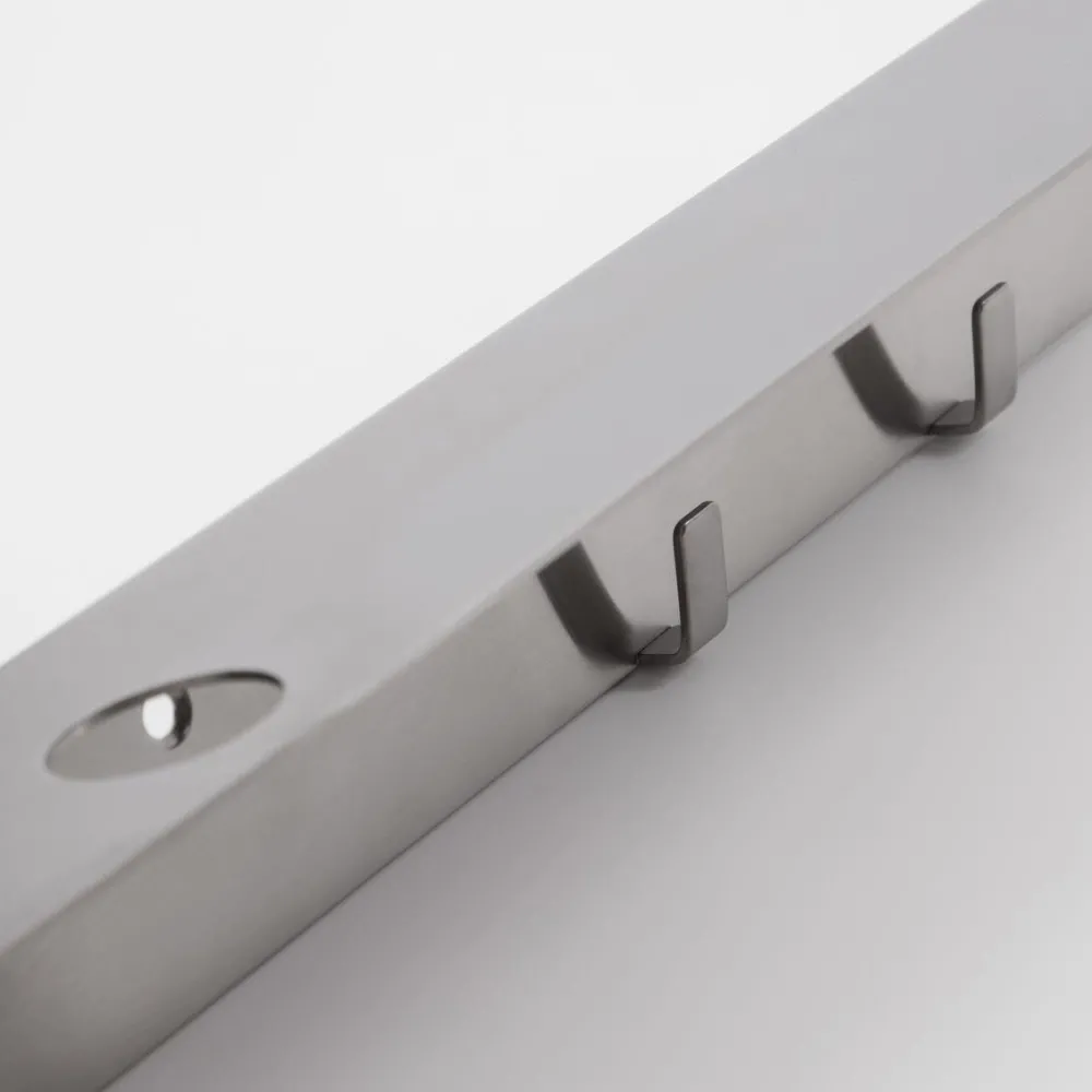 Saml plejeprodukterne og opdatér looket på badeværelset med dette ophæng. Der er plads til at hænge tre flasker op, mens der tilmed kan stilles produkter på hylden foroven og opbevares badesvamp og andre accessories på knagerne. Knagen er lavet i rustfrit stål, som ej lukker vand ind. Uanset om den hænger op i brusekabinen eller på væggen ved håndvasken, er den med til at opfriske badeværelset og holdet det ryddeligt.