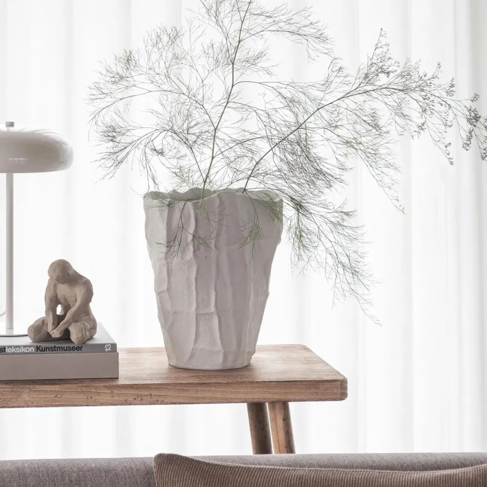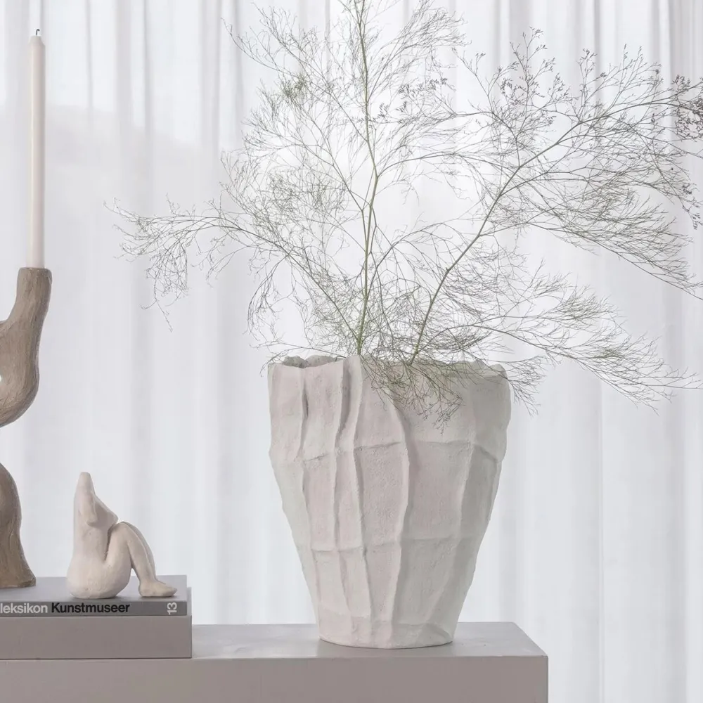 Iøjnefaldende vase, der på fineste vis kombinerer form, materiale og æstetik. Vasens taktile overflade og betydelige størrelse tiltrækker masser af opmærksomhed, hvilket gør den til et ideelt statement piece – både med og uden blomster. Artistic-vasen er en del af Art Piece-kollektionen, som er baseret på Mette Ditmers egne håndformede, keramiske kreationer. Den er genproduceret i stone resin og færdiggjort manuelt efter støbning, hvorfor hver enkelt vase vil være unik.
