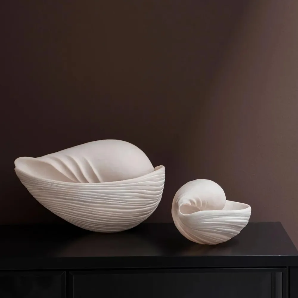 Fin og æstetisk konkylie, som har en indtagende form, der emmer af ro. Havet fornemmes næsten ved blot at se på og berøre skallen. Skab et smukt stilleben i indretningen ved at anvende konkylien som et statement piece. Konkylien, der både kan stå oprejst eller liggende, er en yndig tilføjelse til ethvert rum.