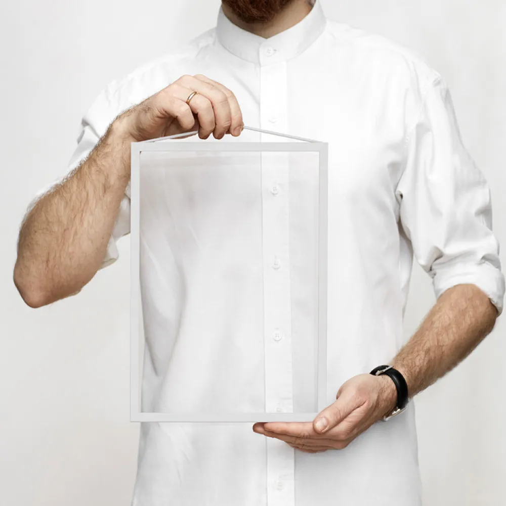 Moderne ramme i fint, flyvende look. Den skønne Moebe ramme har et nutidigt, lækkert design med transparent baggrund. Rammen består af fire lister i grå, to plexiglas og en elastik, der holder det sammen. Brug den søde ramme til et personligt billede eller postkort.