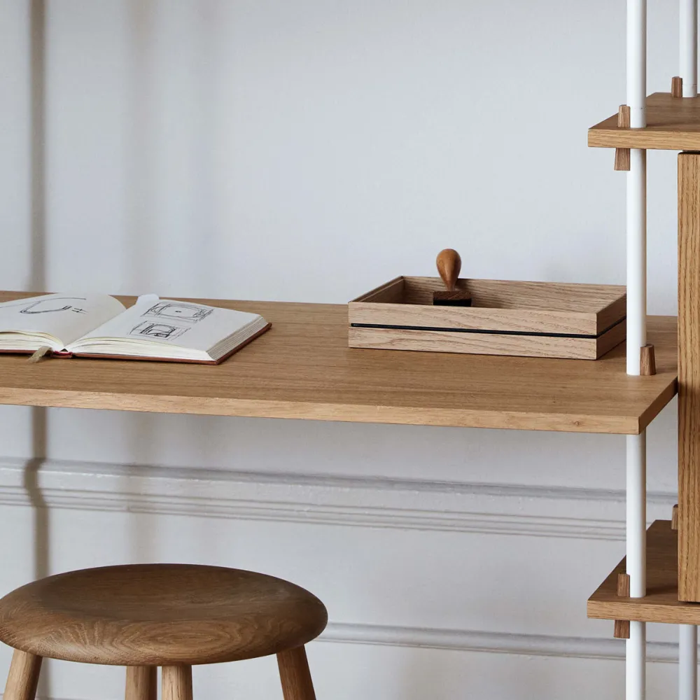 Smuk og minimalistisk organisere, som er udført i et tidløs og moderne design. Blyanter, sedler, nøgler, briller, opladere og papirer – alle disse ting, har brug for deres eget sted. I den forbindelse er organiseren helt ideel, idet den – som navnet antyder – giver dem et sted at være; det organiserer. Organiseren er fremstillet af massiv ubehandlet egetræ og holdes sammen at en enkelt elastik. Det fås både i størrelse A4 og A5; hver størrelse kan stables og er således kompatibel med den anden.